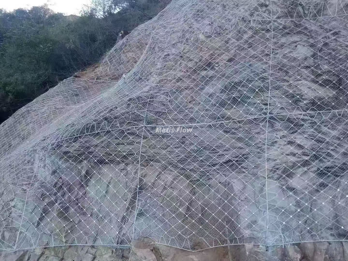 This active slope protection net is a dedicated product for highway and railway slopes, adopts full-coverage design, can closely fit the surface of slopes of different angles (15°-75°), effectively fixing slope soil and rock mass to prevent collapse and erosion. The steel wire is twisted and woven, with high flexibility and strong adaptability, no cracking even under slope slight deformation, and can disperse the impact force of falling rocks to the whole net body. It uses hot-dip galvanizing + high-temperature setting process, anti-corrosion performance is upgraded, suitable for outdoor open-air slopes, and can adapt to extreme temperatures from -45℃ to 65℃. Installation is simple and efficient, construction period is shortened by 30% compared with traditional slope protection, and it does not damage the original vegetation of the slope, widely used for highway subgrade slope, railway side slope and expressway cutting slope protection