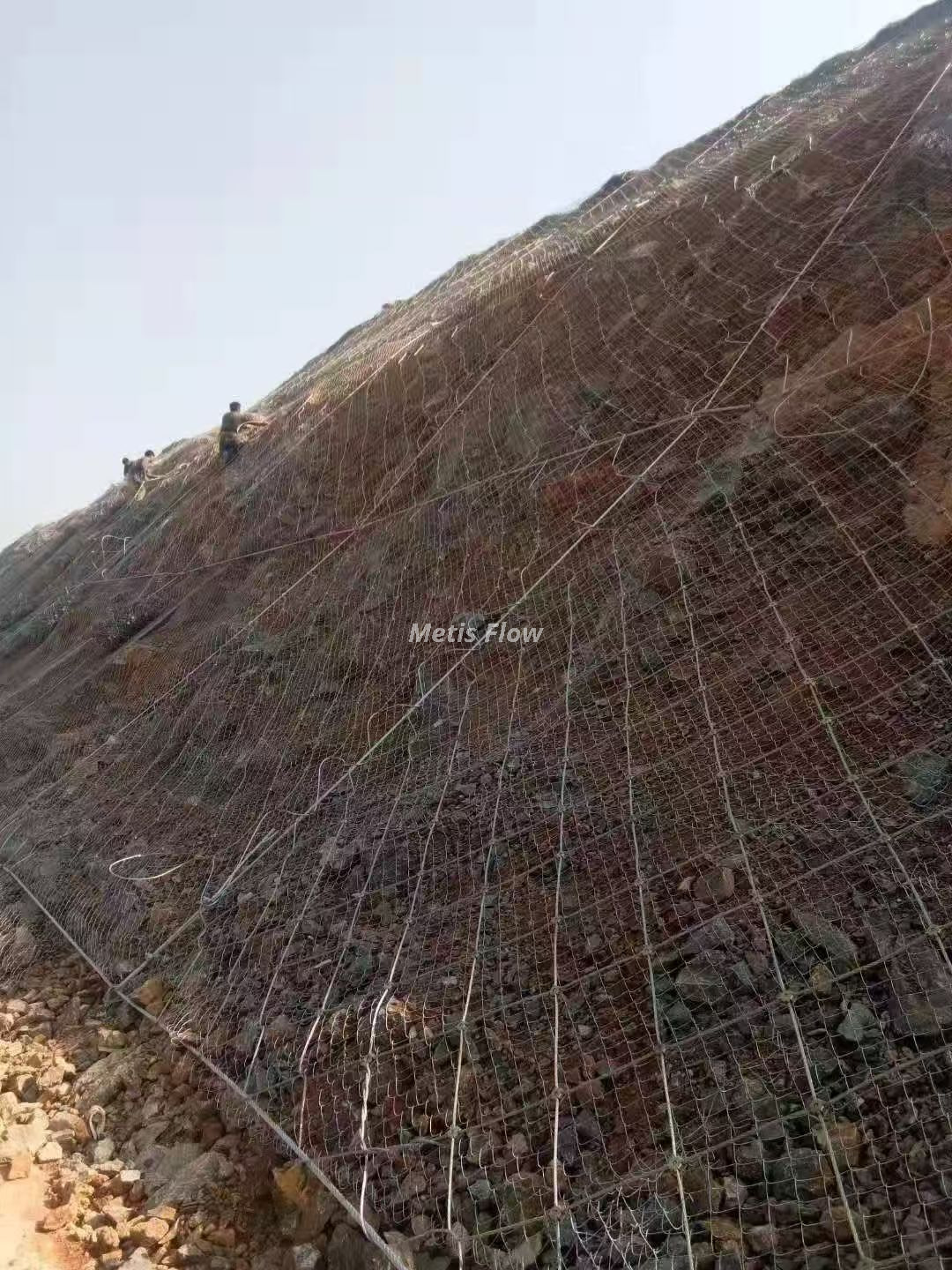 This passive slope protection net is customized for slope bottom rockfall interception, adopts reinforced frame + high-strength flexible net structure, frame uses 8080mm thickened square steel, anti-impact capacity reaches 1500kN, can withstand the impact of large falling rocks (weight ≤500kg) without damage. The net body is made of high-toughness steel wire rope weaving, mesh aperture 5050cm, can effectively catch falling rocks and debris, avoid them sliding to roads and residential areas to cause secondary accidents. The surface is treated with anti-rust and anti-corrosion paint, passes 1200-hour salt spray test without rust, suitable for high-risk slopes such as mountain passes and canyon sides. It is modular designed, can be assembled quickly on site, and the damaged net piece can be replaced independently, reducing maintenance cost, widely applied to slope bottom interception, valley rockfall blocking and high-cut slope safety protection