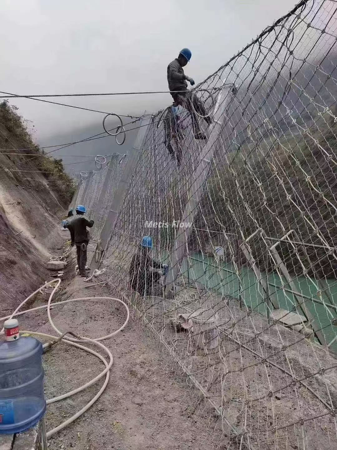 Our slope protection net is made of high-quality high-carbon galvanized steel wire (diameter 2.0-3.2mm) and adopts flexible weaving technology, the net body is tough and not easy to break, overall tensile strength reaches 380MPa, which can withstand the impact of medium-sized falling rocks. The whole product undergoes hot-dip galvanizing full anti-corrosion treatment, galvanizing layer thickness ≥85μm, uniform and dense, effectively isolating air and moisture, resisting acid, alkali and dust erosion, service life up to 18-22 years. It adopts 4*4m standard net piece design, can be spliced freely according to slope area, and is fixed with anchor rods and steel cables, closely fitting mountain terrain without gaps. It is lightweight and easy to construct, no need for large machinery, widely applied to mountain slope stabilization, rockfall prevention and soil erosion control projects